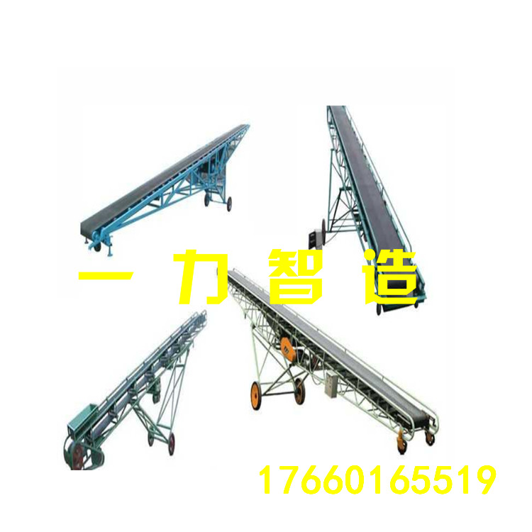 可移动式皮带输送机适用于散粮、包粮的输送、堆垛、装卸车等作业。有5米、8米、10米、12米、15米、18米、20米等规格,移动式皮带输送机有液压、电动、手动三种升降型式。可移动式皮带输送机具有快、慢两种速度、(也可配备调速电机,随意操控速度)托辊可选用平托辊、V型托辊、U型托辊,以适应散料、整包的不同要求,提高了设备的利用,发挥了一机多用的性能。在移动式皮带输送机机架两旁装可配有挡管或挡边,防止粮包在输送时掉包,防止粮食撒漏,便于散装粮食输送。大、小走轮均采用实心胶轮或充气橡胶轮,防止压碎粮食和仓库地面。小走轮具有自动转向的功能,保证了机器移动轻便灵活。移动式皮带输送机机架采用焊接的珩架结构,在包运集中载荷下有足够的强度和良好的钢性。