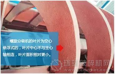 较明显的就是两者叶片上的差异。螺旋洗沙机的叶片是实心刀片式的,螺旋分级机的叶片为悬空空心叶片,如下图所示: