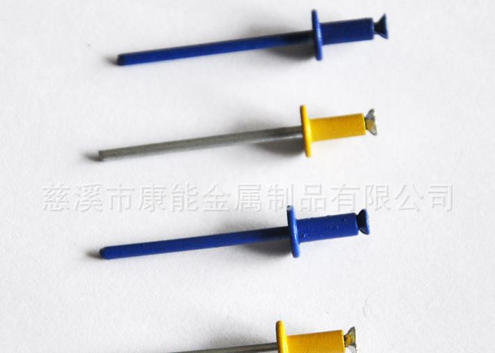 抽芯铆钉是一类单面铆接用的铆钉,但须使用专用工具——拉铆枪(手动、电动、的了动)进行铆接。这类铆钉特别适用于不便采用普通铆钉(须从两面进行铆接)的铆接场合,故广泛用于建筑、汽车、船舶、飞机、机器、电器、家具等产品上。其中以开口型扁圆头抽芯铆钉应用最广,沉头抽芯铆钉适用于表现需要平滑的铆接场合,封闭型抽芯铆钉适用于要求随较高载荷和具有一定密封性能的铆接场合。