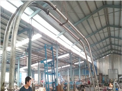 4、最大水平输送距离可达60米,最大提升高度46米(目前国内厂家**宣传为40米,但不一定能做到,但46米高度的管链在印度PTA项目上已成功运用)。最大能力可达60 m3/h。